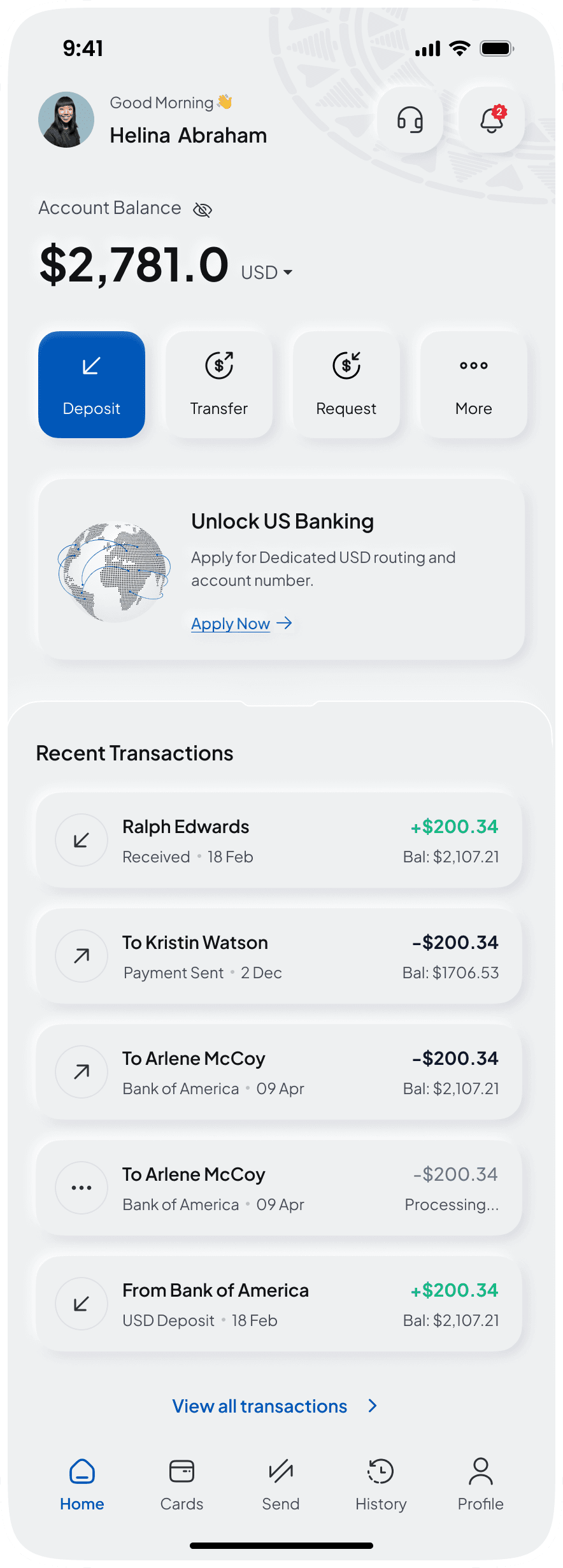 Your USD account for a borderless financial life — secure, smart, and globally connected.